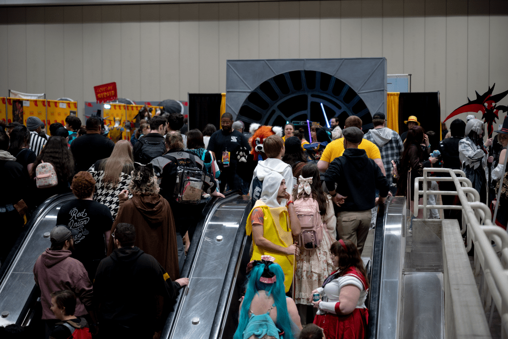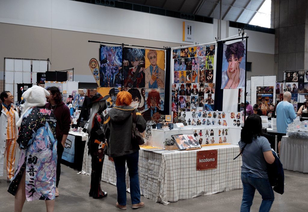 Yet it is also the way in which they make use of the convention center that also makes the con extremely navigable. Having Everything you want to see in one, huge vendor hall makes the experience of getting the art you want while also seeing your favorite voice actress or actor an enjoyable affair. Granted this will present an issue with lines and walkway management if you happen to have a highly in demand guest, like May Hong. Yet, I can assuredly say that for all of Saturday and Sunday, the lines were never intrusive and seemed to be managed with expertise and ease. The spacing for Vendors also felt marginally wider and allowed for easier navigation during the show floor’s operational hours. Even the cosplay meet up spaces were operationally accessible. The only area of weakness that has been pervasive within the exhibit hall, has been the food court area and the sever lack of proper seating space. As the primary eating space next to the food trucks were a hot commodity and in short supply.
